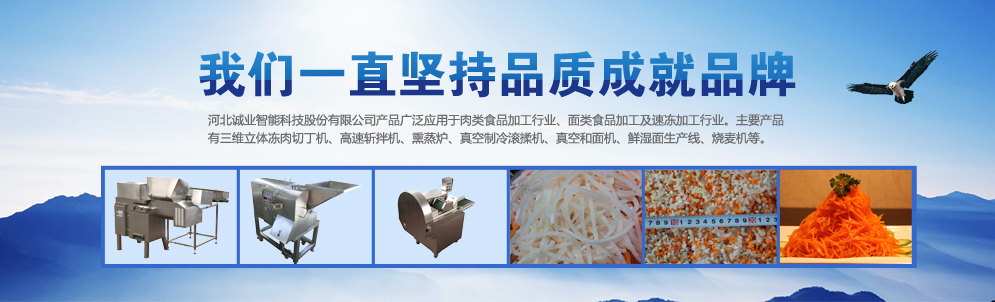 河北诚业智能科技股份有限公司成立于2007年,公司位于河北省石家庄经济技术开发区,专业从事食品机械研发、制造及非标自动化设备研发等业务。 公司产品广泛应用于肉类食品、面食类食品及速冻调理食品加工行业。主要产品有三维立体冻肉切丁机、高速斩拌机、熏蒸炉、真空制冷滚揉机、真空和面机、鲜湿面生产线、烧麦机、蔬菜加工设备等。主要产品销欧洲、澳洲、美洲、非洲、中东及东南亚地区。 公司致力于走科技发展路线,研发了三维立体冻肉切丁机,打破了国外设备厂家在此领域的垄断。通过多年的持续科技研发及市场开拓,目前已奠定三维立体切割领域的地位。公司致力于将食品切割类设备打造为行业标杆产品,突出企业在专业细分领域的技术优势。 诚业人坚持“诚信为本、质量第一”的经营理念,秉承“精准求实、创业创新、自强不息、创业不止”的价值观,为打造一流的科技型智能化企业而奋斗。